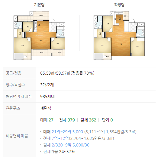 아무래도 세대수가 많은 단지이다보니 아직 전세매물이 평형마다 많은것이 좀 걸리구요